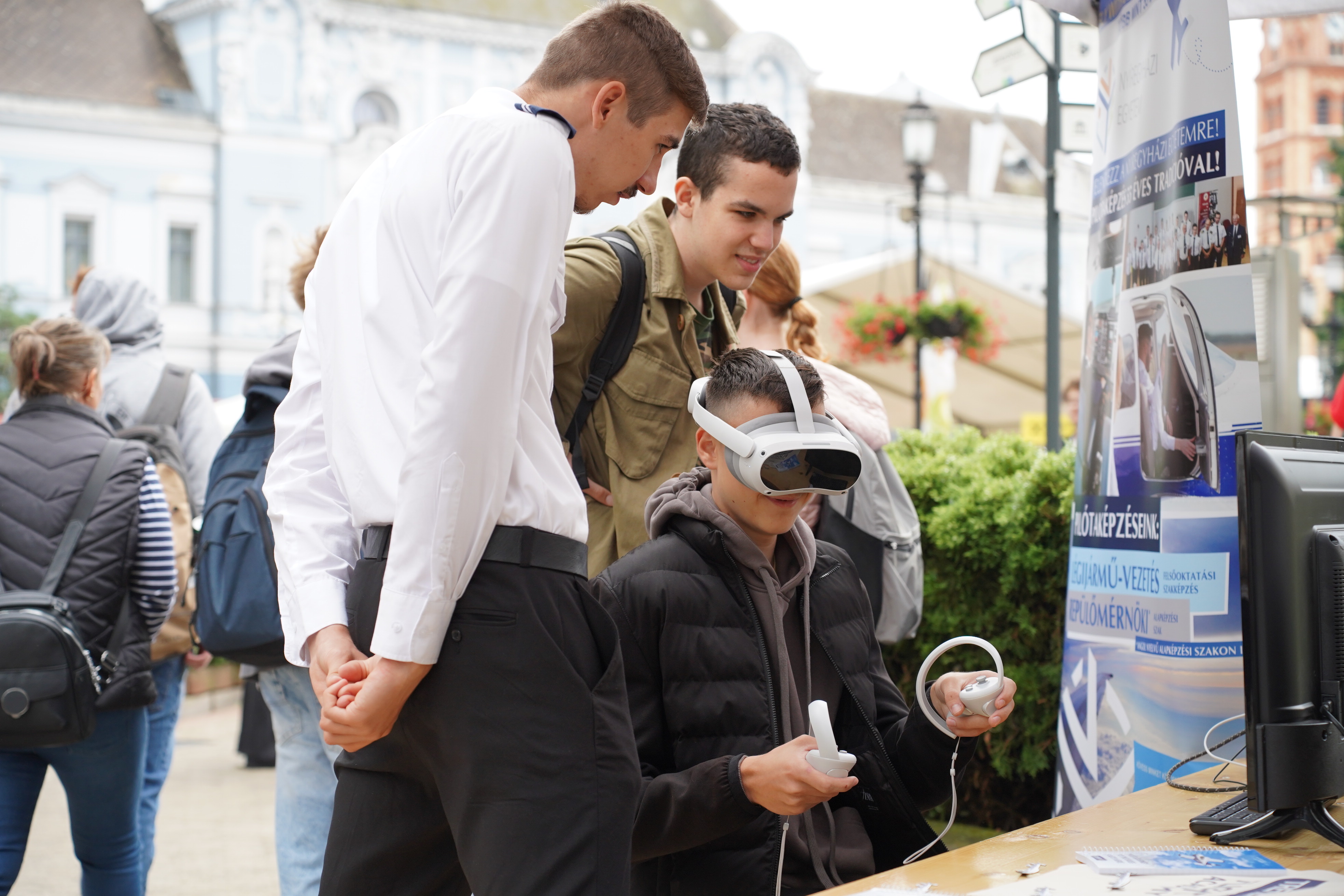 VR-szemüvegek, forgózsámolyos kísérletek, biológiai vizsgálatok, ásványfelismerés, portrékészítés – többek között ilyen interaktív élmények várták a Nyíregyházi Egyetem standjaihoz látogató diákokat a SzakMAfesten 2025. szeptember 11-én. A Nyíregyháza belvárosában harmadik alkalommal szervezett pályaorientációs fesztiválra idén is több ezer diák, szülő és tanár érkezett. A tematikus utcákban szakmacsoportonként alakították ki a standokat, az egyetem intézetei - az oktatók és hallgatók aktív részvételével - így összesen nyolc helyszínen mutathatták be az intézmény széles képzési kínálatát. Az idei rendezvény díszvendégei Kapu Tibor és Cserényi Gyula kutatóűrhajósok voltak, akik egy pódiumbeszélgetés keretében saját életútjukról osztottak meg érdekességeket. A két űrhajós később egy konferencián is részt vett, ahol a Nyíregyházi Egyetem elnökhelyetteseivel szakmai programokról is egyeztettek.