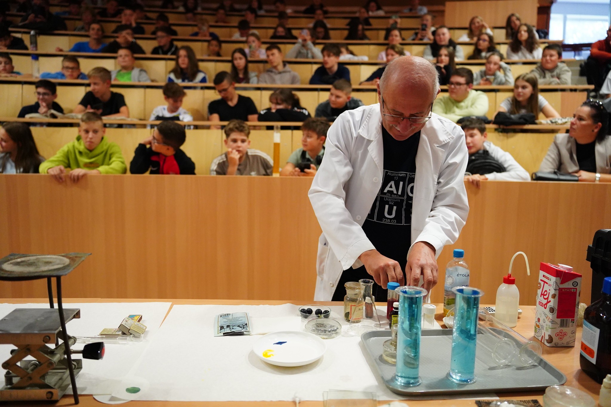 „Rengeteg érdekes program vár ma benneteket, izgalmas, vicces kísérletek, előadások negyven helyszínen” - kezdte köszöntőjét Dr. Kovács Zoltán, nemzetközi kapcsolatokért és innovációért felelős elnökhelyettes a rendezvény megnyitóján. A diákokhoz szólva elmondta: „A kutatás és a tudomány kéz a kézben járnak, ezt szeretnénk nektek bemutatni. Reméljük, a pályaválasztásban is segítenek majd a kínált színes programok.”