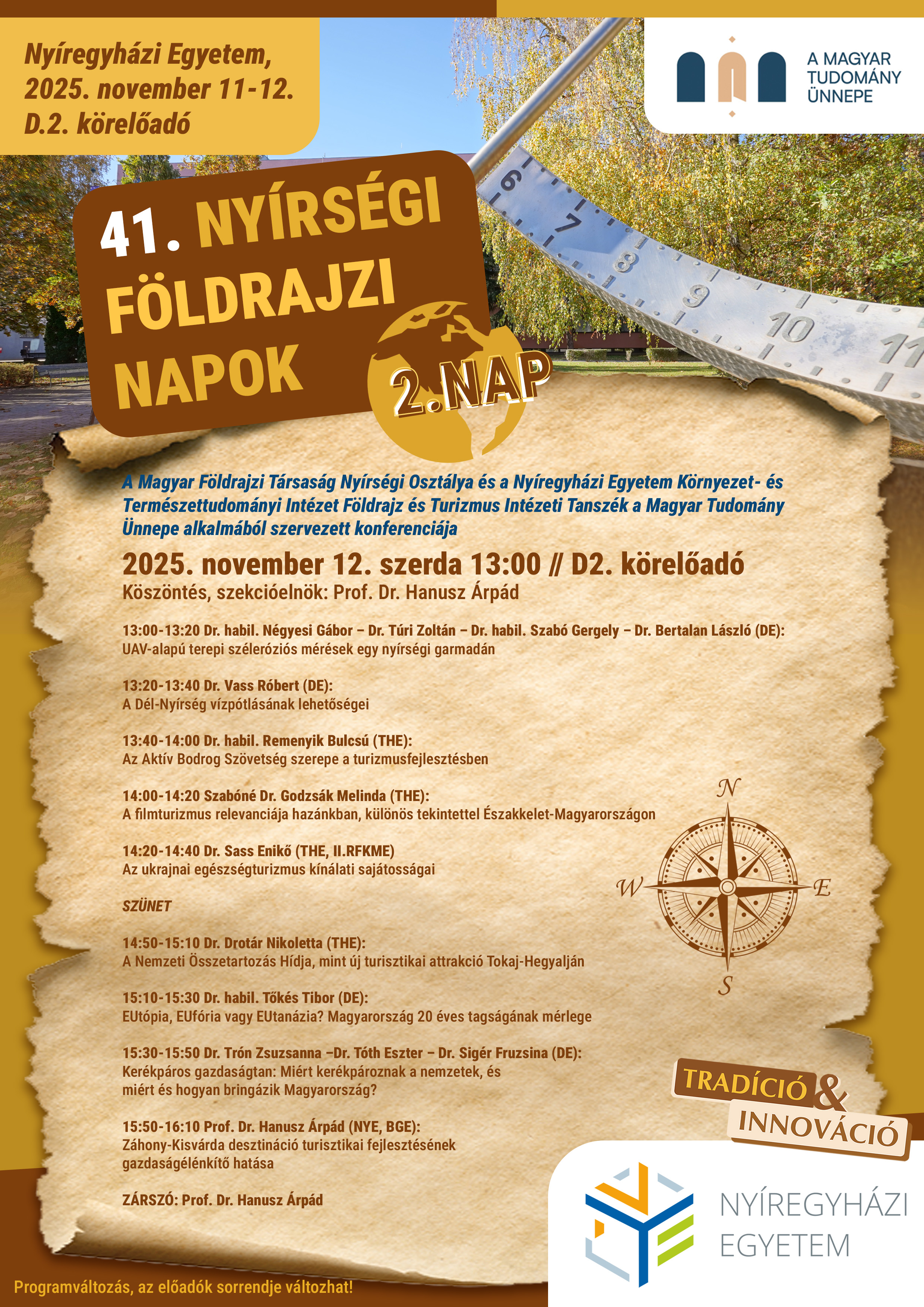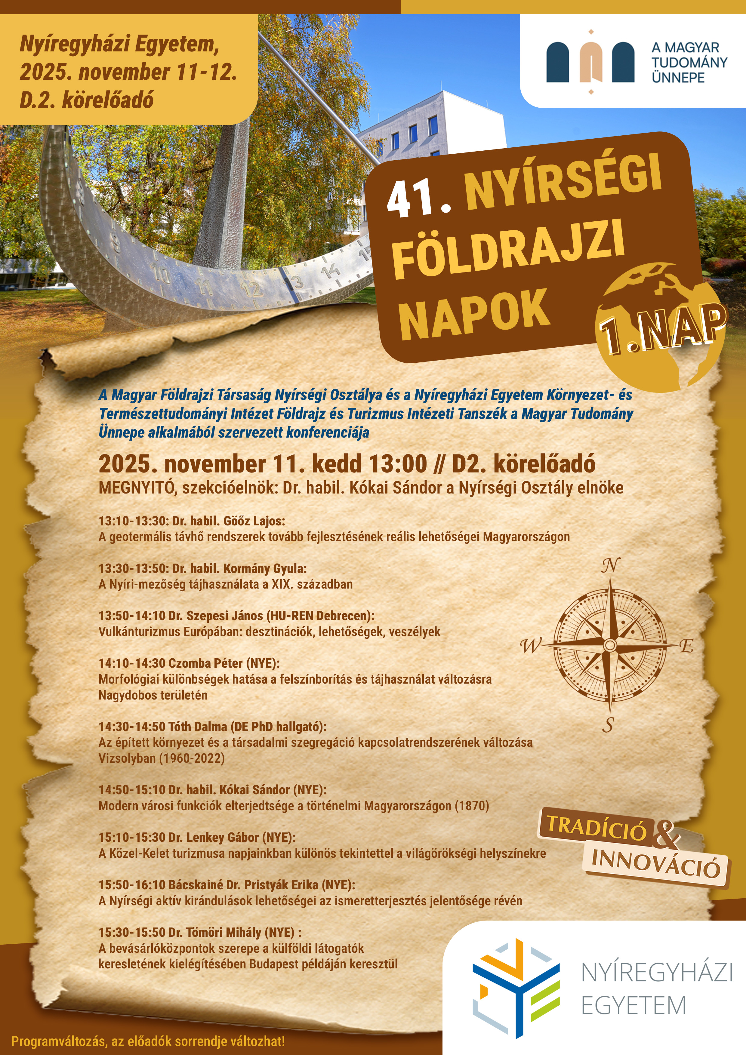 „Ötven évvel ezelőtt indult útjára a kezdeményezés, de volt olyan év, hogy nem tudtuk megrendezni a Nyírségi Földrajzi Napokat, amely idén negyvenegyedik alkalommal hozza össze az ÉK-magyarországi régió földrajz iránt elkötelezett szakembereit. Az országban nincs még egy olyan egyetemi földrajzi intézet vagy tanszék, ahol ilyen hosszú múltra tekinthetne vissza egy földrajztudományi rendezvénysorozat” – hangsúlyozta dr. habil. Kókai Sándor, a Magyar Földrajzi Társaság Nyírségi Osztályának elnöke, a Nyíregyházi Egyetem egyetemi magántanára.