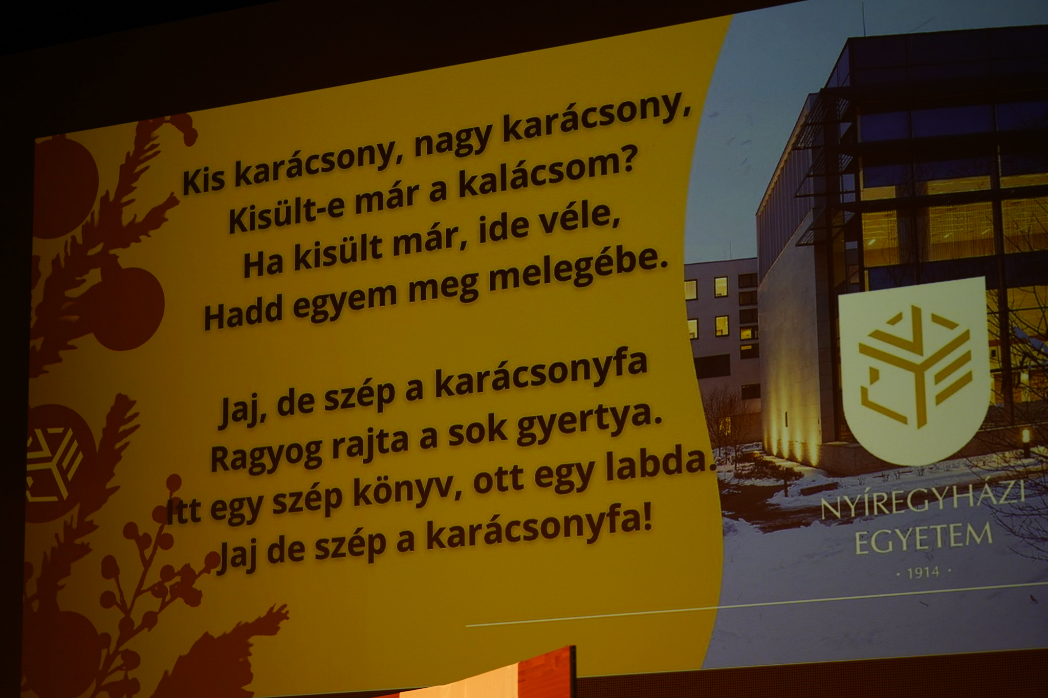 Az év végi ünnepi időszak egyik legszebb és leginkább várt eseményét tartotta meg az Nyíregyházi Egyetem december 16-án. A hagyományos karácsonyi ünnepségen közel háromszáz oktató és munkatárs gyűlt össze a gyönyörűen feldíszített Kodály teremben, hogy közösen tekintsenek vissza az elmúlt esztendőre, és megálljanak egy pillanatra az ünnepek küszöbén.